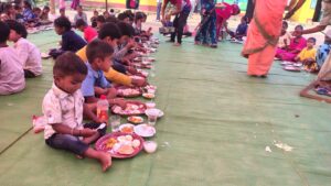 समारोह के अंतिम चरण में आयोजित न्यौता भोज ने सामुदायिक समरसता की एक नई मिसाल कायम की। भोजन की पूरी व्यवस्था में शिक्षकों के साथ पालकों, स्व-सहायता समूह की महिलाओं और ग्रामीण युवाओं ने कंधे से कंधा मिलाकर सहयोग किया। मुख्य अतिथि, सरपंच, सभी जनप्रतिनिधि, शिक्षक, पालक और नन्हे बच्चे, सभी ने सामाजिक भेदभाव भुलाकर एक साथ पंगत में बैठकर प्रेमपूर्वक भोजन ग्रहण किया। इस सामूहिक भोज ने यह संदेश दिया कि प्राथमिक शाला केवल ईंट और गारे की चारदीवारी नहीं है बल्कि यह पूरे गांव का साझा परिवार है।