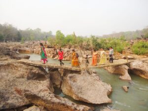 = बांस से निर्मित पुल के सहारे नदी पार कर गुफा में पहुंचते हैं श्रद्धालु =