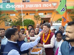 भाजपा प्रदेश अध्यक्ष किरण सिंह देव ने कार्यकर्ताओं का मुंह मीठा कराया और जीत की खुशी में शरीक हुए