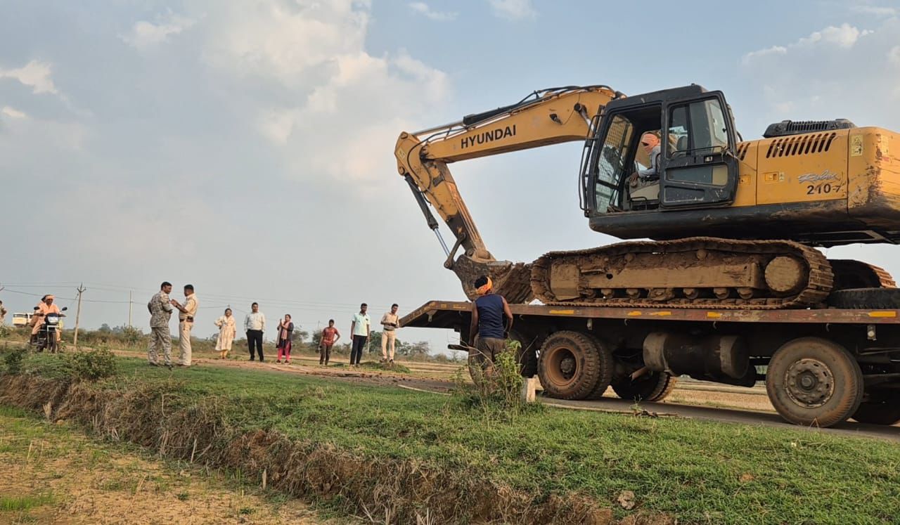 अवैध रेत खनन पर कार्रवाई, जप्त पोकलेन मशीन को किया गया पुलिस के सुपुर्द