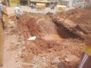 बताया गया है कि आयुक्त कार्यालय के बाजू गली आईडीबीआई बैंक के सामने सड़क का निर्माण एक ठेकेदार के माध्यम से कराया जा रहा है। ठेकेदार ने नगर निगम से पाईप लाइनों की जानकारी प्राप्त किए बगैर ऎसी खोदाई शुरू करवा दी कि पेयजल की पाईप लाइन ही बुरी तरह क्षतिग्रस्त हो गई। इसके चलते नया मुंडा क्षेत्र के बड़े भाग में पेयजल की सप्लाई पूरी तरह ठप हो गई है। नगर निगम का जल कार्य विभाग पाईप लाइन की मरम्मत में जुटा हुआ है और आज रात्रि तक काम पूरा हो जाने की उम्मीद है। वैसे भी ग्रीष्म ऋतु आने के साथ ही नगर के कई वार्डों पानी की परेशानी हो रही है। ऊपर से कल ही कमिश्नर कार्यालय के समीप एक बड़ी पाइप टूटने से वार्डवासियों को पानी की किल्लत हो गई है। वहीं नगर निगम के जल विभाग सभापति सुरेश गुप्ता के अनुसार पाईप लाइन की मरम्मत कार्य शुरू है आज शाम तक बनने की संभावना है।