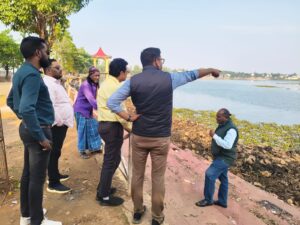 इसके बाद महापौर श्री पाण्डे नगर निगम आयुक्त प्रवीण कुमार वर्मा के साथ गंगामुंडा तालाब पहुंचे। यहां चल रहे सफाई एवं स्वच्छता कार्यों का उन्होंने स्थल पर पहुंचकर जायजा लिया। महापौर संजय पांडे ने अधिकारियों से कहा कि तालाब क्षेत्र की सफाई कार्यों में तेजी लाई जाए तथा जल संरक्षण के दृष्टिकोण से सभी आवश्यक उपाय सुनिश्चित किए जाएं। उन्होंने बताया कि सफाई व्यवस्था को चरणबद्ध तरीके से आगे बढ़ाया जा रहा है और निर्धारित समय-सीमा में तालाब की सफाई कार्य पूर्ण करने का लक्ष्य रखा गया है। महापौर संजय पाण्डे ने कहा शहर के सार्वजनिक स्थलों, तालाबों और सभागारों को बेहतर स्वरूप देना हमारी प्राथमिकता है। हर कार्य को समयसीमा और गुणवत्ता के साथ करना हमारी टीम की प्रतिबद्धता है।