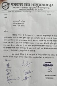 पत्रकार संघ ने एसडीएम को ज्ञापन सौंपकर सख्त कार्रवाई की मांग की है। साथ ही थाना भानुप्रतापपुर में पार्षद और कार्यक्रम आयोजकों के खिलाफ शिकायत दर्ज कराई गई है।संघ के पदाधिकारियों ने दो टूक कहा कि इस तरह की भाषा किसी भी जनप्रतिनिधि को शोभा नहीं देती और यह अभिव्यक्ति की मर्यादा के खिलाफ है। उन्होंने चेतावनी दी है कि यदि जल्द कार्रवाई नहीं हुई, तो 7 अप्रैल को भानुप्रतापपुर के मुख्य चौक पर जोरदार प्रदर्शन और चक्का जाम किया जाएगा।पत्रकारों ने साफ किया है कि वे अपने सम्मान और अधिकारों की रक्षा के लिए हर स्तर पर संघर्ष करेंगे। पत्रकार संघ के अध्यक्ष अजय साहू ने कड़ी प्रतिक्रिया देते हुए कहा कि, जनप्रतिनिधियों को अपने पद की गरिमा का ध्यान रखना चाहिए। पत्रकार लोकतंत्र का चौथा स्तंभ हैं, उनके खिलाफ इस प्रकार की अभद्र भाषा का प्रयोग बेहद दुर्भाग्यपूर्ण है। यदि शीघ्र कार्रवाई नहीं हुई, तो पत्रकार संघ उग्र आंदोलन के लिए बाध्य होगा, जिसकी पूरी जिम्मेदारी प्रशासन की होगी। फिलहाल पूरे मामले को लेकर जिले में माहौल गरमाया हुआ है और प्रशासन की अगली कार्रवाई पर सभी की नजरें टिकी हैं।