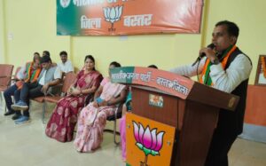 जगदलपुर। भारतीय जनता पार्टी के जिला पदाधिकारियों की नई टीम के गठन के बाद आज शनिवार को भाजपा जिला कार्यालय में कार्यकर्ताओं की जिलास्तरीय बैठक आयोजित की गयी। बैठक में लौहपुरुष सरदार वल्लभ भाई पटेल की 150 जन्म जयंती वर्ष पर आगामी 24 नवम्बर को करीत गाँव से जगदलपुर तक निकलने वाली एकता पदयात्रा में समस्त कार्यकर्ताओं को सम्मिलित होने कहा गया। साथ ही मतदाता शुद्धिकरण हेतु निर्वाचन आयोग द्वारा चलाये जा रहे विशेष गहन पुनरीक्षण अभियान (एसआईआर) में कार्यकर्ताओं से अपने क्षेत्र के मतदाताओं को जागरूक करते हुये सहयोग करने कहा गया।